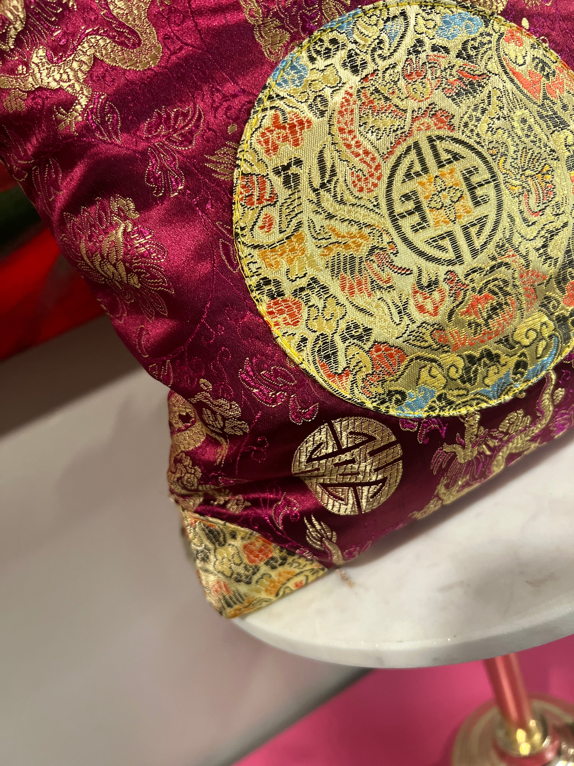 ✔ Striking magenta fabric with an elegant oriental-inspired design